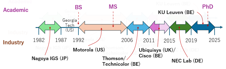 I'm originally from Nagoya, Japan. After several years in the industry in my home town, I decided to go to the US to go to a university. Since then, my life started to diverge to an unexpected direction. I've been living outside of Japan for many years more than half of my lifetime. I've spent ~30 years in the mobile telecom industry as an enginner, then decided to change to academia. Along the way, I did a lot of things, saw a lot of things, and learned a lot of things. I've met and worked with a lot of people from many different countries. Accumulation of all those life experience shaped me to what I am today...